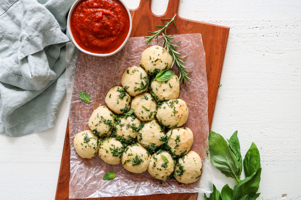 - Serve the Garlic & Herb Christmas Tree Bread with warm marinara sauce, for dipping.
